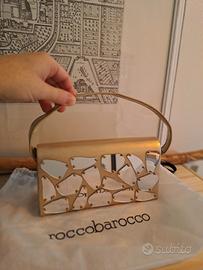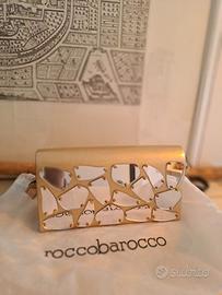 Pochette Roccobarocco elegante, color champagne con specchietti davanti. Tracolla corta da polso Usata solo in occasione un matrimonio.