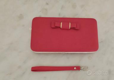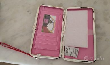 Pochette con manico removibile per polso, con scatola originale, contiene perfettamente un cellulare e le carte di credito e documenti. Mai usata, materiale similpelle. Perfetta come regalo . Consegna a mano zone vicine
