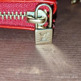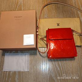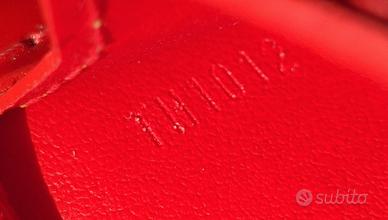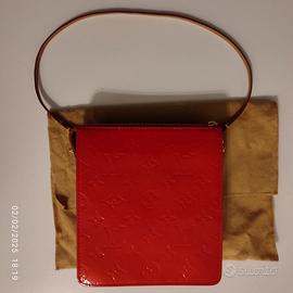Vendo pochette Louis Vuitton in pelle verniciata (Monogram Vernis Mott) colore rosso con stampa a goffratura del monogramma, con due tracolline in pelle naturale una lunga cm 125 e l’altra lunga cm 53, con fermagli in ottone dorato, tasca frontale con patta e chiusura a scatto e zip. Made in France. Misure in cm: altezza 18, larghezza 16, profondità 5. Il numero di serie è TH 1012. Nuova mai usata è completa di scatola originale con logo, dust bag originale in tessuto con logo e librettino per la cura della pochette in varie lingue. Su richiesta posso inviare altre foto