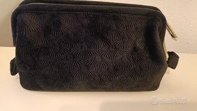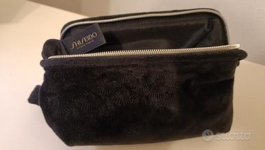 pochette Shiseido nera con disegni a ventaglio. tipo velluto, nuova mai usata.