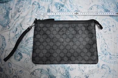 Pochette marca "Segue" nera e grigia con taschina interna. Chiusura con cerniera