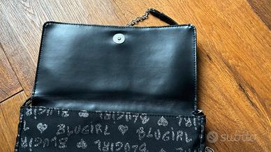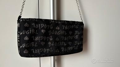 Pochette in tessuto e interno in VERA pelle, con catenella acciaio e logo lurex, chiusura con bottone. Blumarine made in Italy. Vintage primi anni 2000, ottimo acquisto. Di gran carattere!