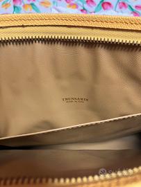 Pochette Trussardi in vera pelle , made in Italy, datata ma in perfette condizioni, sia esternamente che all’interno. Nessuna macchia, abrasione o scoloritura. Pari al nuovo .
