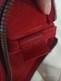 Esterno in vera pelle martellata rossa. Interno scamosciato.