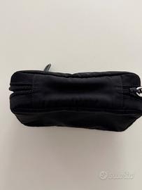 Caratterizzato da una linea essenziale ed enfatizzata dall'iconico logo triangolo in metallo smaltato, questo necessaire è presentato nell'innovativo Re-Nylon di Prada,