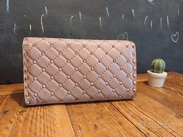 Pochette Valentino Rockstud Spike Chain colore Poudre.