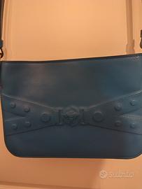 pochette Versace in pelle blu, nuovo mai usato. completo di custodia di protezione. Consegna a mano, non spedisco.