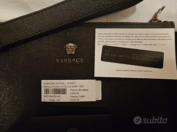 vendo pochette versace ORIGINALE comprata in negozio pagata 250€ vendo per inutilizzo, ha dei difetti come si vede nelle foto, ma è per l'inutilità.