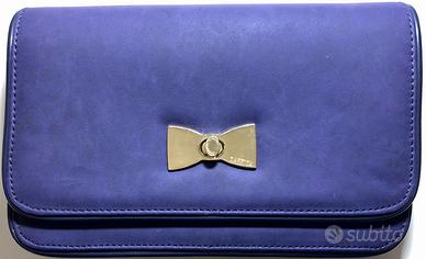 Borsetta rigida di marca Carpisa, colore viola, tracolla removibile color oro. Scomparto interno protetto da zip, retro in vernice, fronte effetto daino, rivestimento interno in satin, metalleria in oro, chiusura sicura, discreta capienza. Da portare a mano o con catena a spalla o tracolla. Usata poco.