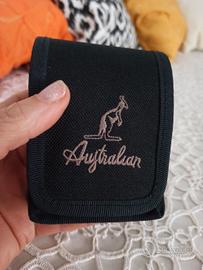 Pocket Australian in tessuto nero/grigio, marchio ricamato a mano, nuovissimo, ideale da tenere in borsetta o in tasca.