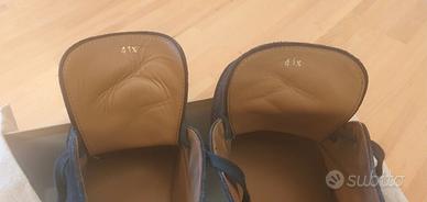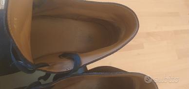 Belle polacchine colore Blu di Velasca Milano modello Umbrelèe misura 41 1/2 anche se sulla scatola compare il 42 (errore della ditta che mi ha spiegato che può accadere ... il riferimento è il numero sulla linguetta delle scarpe ovvero 41 1/2. Le scarpe sono state usate poco (max 5/6 volte) e sono perfette (vedi foto sul consumo dei tacchi praticamente intatti). Costo pagato € 180,00. Le scarpe sono state sanificate e sono vendute con scatola originale e sacchetti portascarpe Velasca. Astenersi offerte ridicole altrimenti le tengo (sono passato ad altro colore ma stessa scarpa).