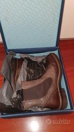 Vendo polacchini in pelle marca MFM, modello Beatles, con gambale alto (17 cm) in pelle bicolor.