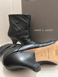 Polacchino janet & janet vera pelle fondo cuoio, colore nero, taglia 35, tacco 7cm, nuovo.