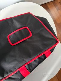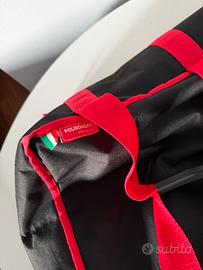 Misure: 20 cm x 45 cm x 45 cm Struttura esterna in nylon (PA) isolamento in poliuretano espanso (PU) ed interno in poliestere resinato (PL). Provvista di: ampia tasca esterna porta etichetta, comodi manici e asola per appendere la borsa ad asciugare o per lo stoccaggio e comoda maniglia per il trasporto a mano. Provvista di fori di aerazione per il rilascio del vapore. 100% Made in Italy. Prezzo originale: 53€