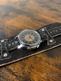 Orologio Poljot svegliarino. Cassa da 36 mm. Quadrante personalizzato U.S.A. Movimento meccanico a carica manuale Poljot 2612. Perfettamente funzionante, sveglia acuta e duratura. Cinturino bund artigianale. Prezzo non trattabile.