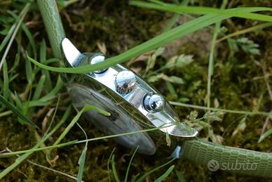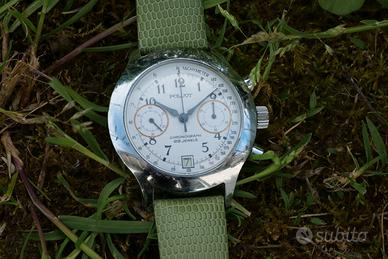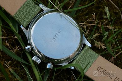 Affascinante cronografo Poljot a carica manuale, mosso dal leggendario movimento 3133, derivato dal Valjoux 7734. Un orologio che incarna lo spirito militare sovietico, prodotto a cavallo tra la fine degli anni '80 e i primi anni '90. 🔹 Quadrante: Splendido quadrante bianco latte originale, in ottime condizioni. Indici arabi stampati, contatori cronografici con bordi dorati, scala tachimetrica e datario ad ore 6. Firma "MADE IN USSR". 🔹 Cassa: Cassa in metallo da circa 38mm (esclusa corona). Presenta onesti segni del tempo e dell'us. Corona e pulsanti crono a pompa. 🔹 Movimento: Movimento cronografico a carica manuale Poljot 3133, 23 rubini. Funzionante (marcia e funzioni cronografiche OK). -Si valutano permute con altri orologi vintage (di marca e non), nonchè altri oggetti vintage di valore, metalli (oro, argento), ecc. 🔍 Foto scattate con lente macro per la massima trasparenza; dal vivo eventuali imperfezioni o difetti risultano meno percettibili. Venditore professionale, venduto insieme a certificato controllo tecnico e originalità delle componenti. Visibile con più foto e video📽️sulla mia pagina Instagram @tomvintagecollection.