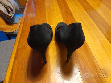 Dècolletè pollini e studio pollini camoscio nero tacco 12 zeppa 2cm tg 38