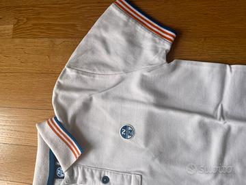 Polo a maniche corte con dettagli arancioni e azzurri sul colletto e sulle maniche