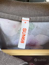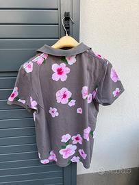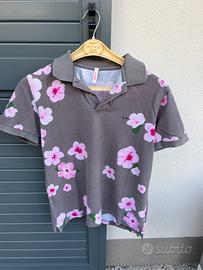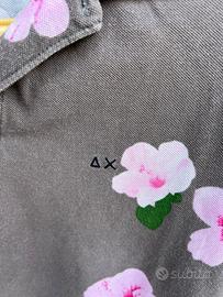 Polo a maniche corta grigia con fantasia a fiori rosa. Marca: Sun68 Taglia: M Materiale: 100% cotone Condizioni: molto buone