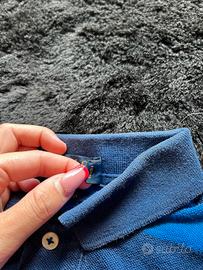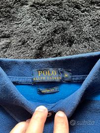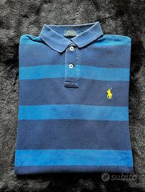 Vendo polo a maniche corte a righe colore blu scuro e azzurro originale Polo by Ralph Lauren con cavallino/pony giallo.