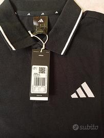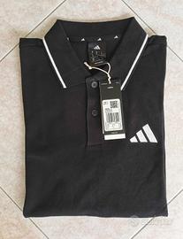 Polo per uomo. Marca Adidas. Taglia S. Regular Fit. Nera con strisce bianche. Con colletto e due bottoni. 100% cotone. Nuova, ancora con cartellino.