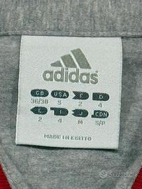 Vendo bellissima polo Adidas originale dal design sportivo e retrò. Il capo si distingue per il contrasto cromatico tra il corpo grigio chiaro e i dettagli (colletto e bordini manica) in rosso vIvace. • Marca: Adidas • Taglia: L'etichetta riporta diverse taglie internazionali (|: 4, USA: S, CDN: S/P). Veste come una S comoda o una M aderente. • Dettagli: * Logo Adidas ricamato sul petto in bianco. • Chiusura a tre bottoni bianchi. • Caratteristica patch in tessuto applicata sul fondo con firma ricamata, che dona un tocco esclusivo al capo. • Materiale: Cotone morbido e leggermente elasticizzato, molto confortevole. • Condizioni: Ottime, non presenta segni di usura, macchie o buchi. Colori ancora molto vividi. Perfetta per un look casual o sportivo curato. Spedizione rapida e imballaggio accurato!