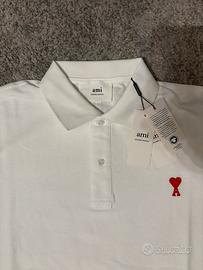 polo ami paris bianco con cuore rosso, nuovo mai usato con cartellino, taglia S
