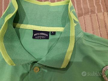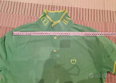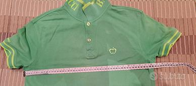 VENDO POLO DA UOMO A MEZZE MANICHE, MARCHIO BACI & ABBRACCI ORIGINALE (COME DA LOGO RICAMATO). TG. L. COLORE VERDE MELA E CON DETTAGLI IN VERDE FLUO A CONTRASTO SUL COLLETTO E SUI BORDI DELLE MANICHE. DI COTONE. MISURE COME DA FOTO. IN OTTIME CONDIZIONI