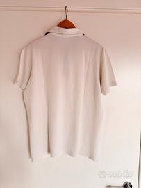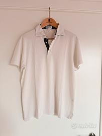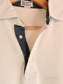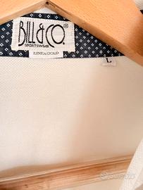 Bill&Co Sportswear – Linea Gold Polo uomo L bianco panna, collezione Linea Gold. Tessuto piqué pregiato con vestibilità classica ed elegante. Dettaglio raffinato: colletto e placchetta interna rivestiti in cotone blu navy con micro-fantasia a rombi, bottoni in madreperla. Spacco laterale sul fondo. Stile italiano intramontabile, ideale per un look smart-casual impeccabile. #Polo #BillAndCo #LineaGold #Sportswear #MensStyle #SmartCasual #ItalianStyle #PoloBianca #SecondHand #PreOwned #Abbigliamento #Uomo #TagliaL #PoloPiqué #Moda #Vintage #FashionSostenibile #Sostenibile