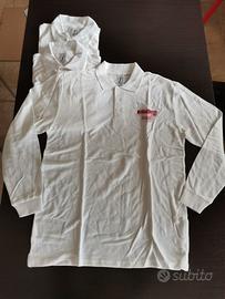 N.3 polo bianche tg L Nuove, mai neppure provate. Con logo di industria molitoria italiana, ottima per esempio per ristoranti, pizzerie, o nell'industria alimentare. Polo con colletto e 3 bottoni. 100% cotone