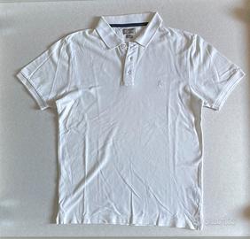 Polo a maniche corte bianca taglia L, traspirante e di qualità. Colore: Bianco con dettaglio blu navy all'interno del colletto. Dettagli: Logo ricamato sul petto, colletto e bordi manica a costine. Perfetta per un look casual-chic o sotto una giacca estiva. ✅ Condizioni perfette, come nuova 📦 Spedizione veloce #spedizioneveloce #polouomomanichecorte #polouomo