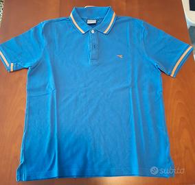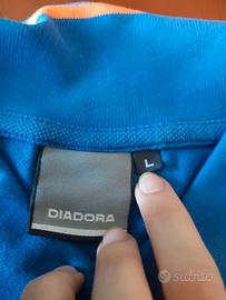 Polo manica corta blu con bordino e logo arancione Marca DIADORA Taglia L 100% cotone