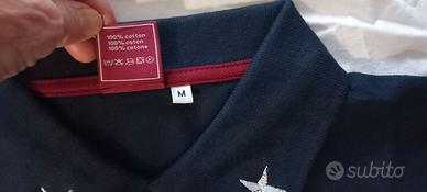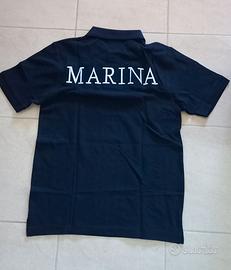 Polo colore blu Navy Taglia M, manica corta, in cotone piquet con la scritta Marina ricamata sul retro e stellette ricamate sul collo, velcro al petto.