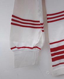 Fantasia a righe rosse su fondo panna, con logo ricamato sul petto.