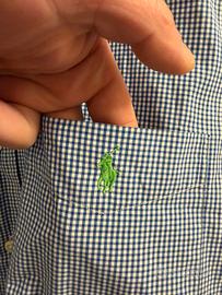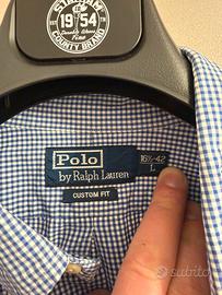 Polo by Ralph Lauren Custom Fit Size L, colore bianco blu a quadri, materiale cotone. Taglia L (misure indicate in foto). Condizioni pari a nuovo.