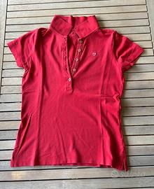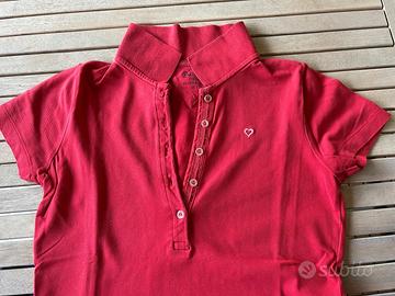 - Modello: Polo da donna rossa, con 5 bottoni davanti e logo bianco con cuore sul petto, in buono stato