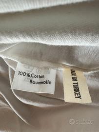 Polo di cotone bianca con decorazioni colorate, lunga 72 cm e larga 54 cm (vedere anche foto con dettaglio delle misure)
