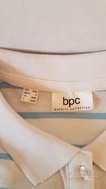 Polo donna bianca righe azzurre, poco usata, marca BPC, taglia 42/44