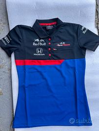 Vendo polo ufficiale Scuderia Toro Rosso – F1 Team – stagione 2019 Polo originale da team della Scuderia Toro Rosso (oggi AlphaTauri/Racing Bulls), relativa alla stagione 2019 — l’ultima con motorizzazione Honda prima del rebranding del team. Come si datano con certezza: il logo Honda sul petto è apparso sulla livrea Toro Rosso a partire dal 2018, e il nome “Toro Rosso” è stato utilizzato fino alla fine del 2019. Dal 2020 il team si chiama AlphaTauri. La presenza congiunta di Red Bull, Honda e Toro Rosso colloca il capo inequivocabilmente in quell’arco temporale. Dettagli del capo: •Polo tecnica da team, taglio femminile •Taglia: XS