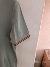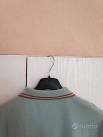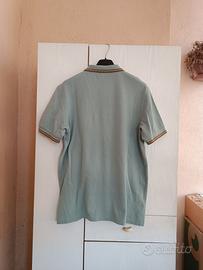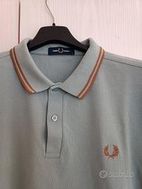 Polo due bottoni originale marca Fred Perry taglia L misure da ascella ad ascella 54cm lunghezza 71cm spalle 48cm manica 24cm colore turchese logo ricamato 100% cotone ottime condizioni.Per ulteriori info e foto su questo articolo o su qualsiasi altro prodotto non esitate a scrivermi