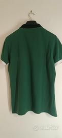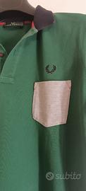 Polo Fred Perry uomo, colore verde con dettagli a contrasto. Colletto nero con interno rosso, chiusura a due bottoni. Logo Fred Perry ricamato sul petto lato sinistro. Presente taschino applicato frontale in tessuto chiaro (bianco/grigio) con cuciture a vista. Maniche con bordo a contrasto chiaro. Linea pulita ma con dettagli particolari che la rendono diversa dalla classica polo. Taglia XL (come da etichetta). Vestibilità regolare. Condizioni: buone. Capo usato ma tenuto bene, senza strappi o difetti strutturali evidenti. Prodotto originale, etichetta interna presente (licenza Fred Perry – Beta S.p.A.).