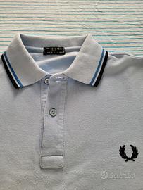 Polo Fred Perry celeste con dettagli blu ed azzurri, taglia 16 anni (o XS da uomo). Possibile vendita in set con stesso modello colore grigio (vedi altro annuncio).
