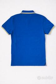 Polo a maniche corte colore blu con colletto e bordi delle maniche a righe gialle e bianche, logo ricamato sul petto e chiusuraa due bottoni. Adatta all’uso quotidiano, ideale per chi cerca un capo versatile e sempre attuale.