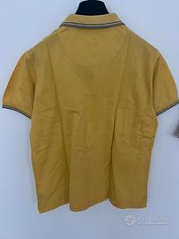 Vendo polo originale Harmont & Blaine colore giallo, con logo bassotto ricamato sul petto. Modello semplice ed elegante, perfetto per la stagione primavera/estate. Dettagli: •Colore: giallo •Colletto con rifiniture grigie •Logo ricamato •Vestibilità: regular (tendente slim)