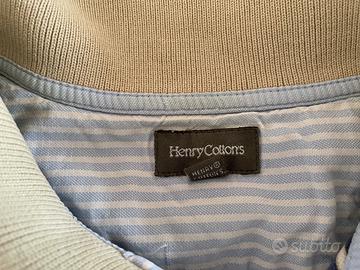 Polo Henry Cotton’s, taglia M, a righe, colore blue e beige, cotone, con ricamo lato anteriore e interno abbottonatura colletto in tessuto a righe bianco/azzurro.