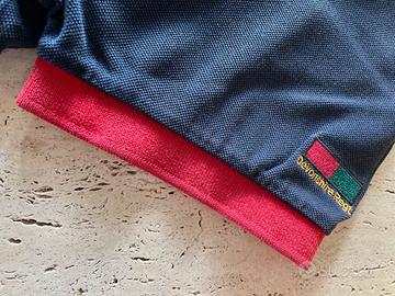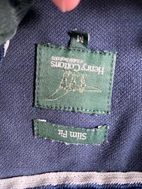 Polo HENRY COTTON’S, colore blu scuro, inseriti rossi e verdi su colletto e maniche, 100% cotone, usata poco, condizioni ottime.