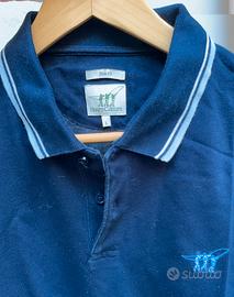 Polo Henry cottons colore blu con righine azzure e bianche sulla manica e sul collo in ottime condizioni