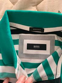 Polo Hugo Boss in cotone. Pari al nuovo perché indossata un paio di volte. L’etichetta con la taglia è tagliata ma dovrebbe essere una L. Comunque ci sono le misure in foto.