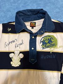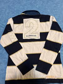 Vendo polo la martina originale , taglia M , la polo e bianca crema , con righe blu, e bordi chiari giallo chiaro, la polo presenta due loghi applicati e cuciti sul petto , e un'altro toppa col numero 2, applicato sulla schiena, presenta il collo blu scuro, la vendo a 50€ piu 10€ di spedizione , consegno a mano o spedizione , x altre info contattatemi grazie