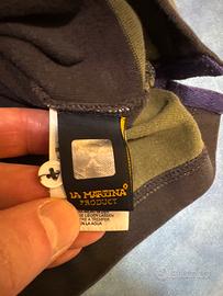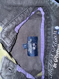 Vendo polo la martina originale a maniche corte, taglia L, la polo presenta loghi sul petto a dx e a sx , e una scritta sul lato B , il colore della polo e verde e marron scuro a righe, e il colletto viola scuro , chiusura delle maniche a bottone . La vendo a 50€ piu 10€ di spedizione , consegno a mano o spedizione , x altre info contattatemi grazie
